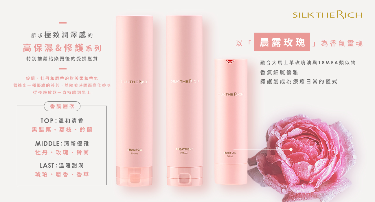 SILK THE RICH 高保濕&修護洗髮精 <晨露玫瑰> 250ML